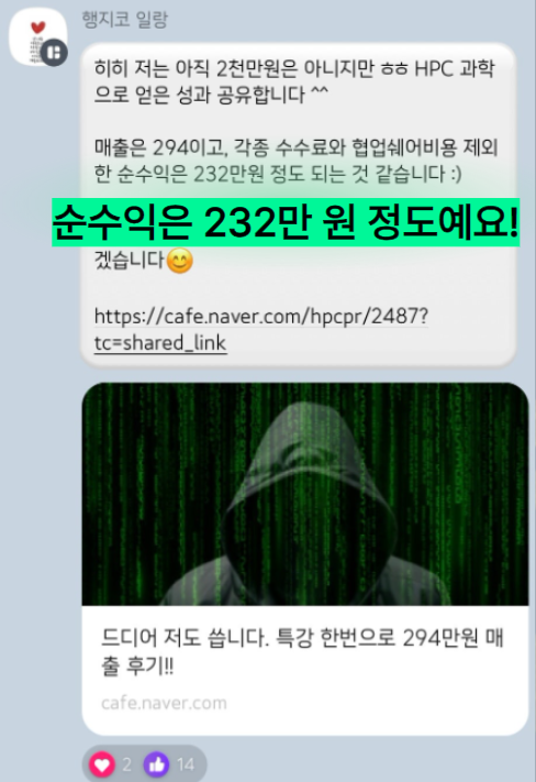여러분들께 사업 매출을