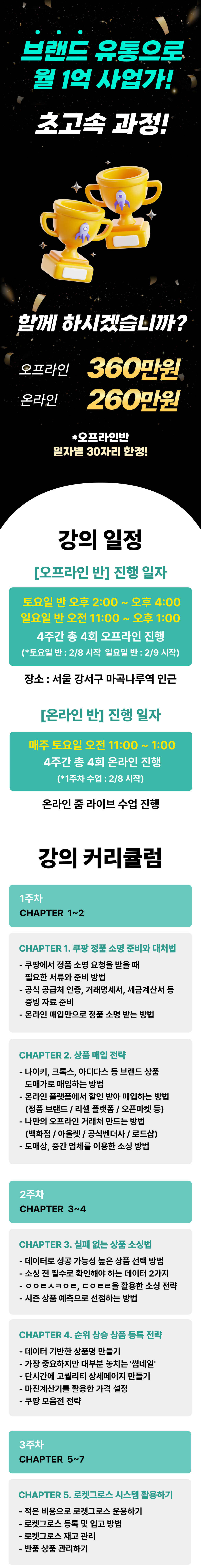 * 수강생 개인의 사정으로 인해 사업자 등록이 불가하거나, 소싱 상품 확보가 어려운 경우에도 위 규정이 적용되지 않습니다.