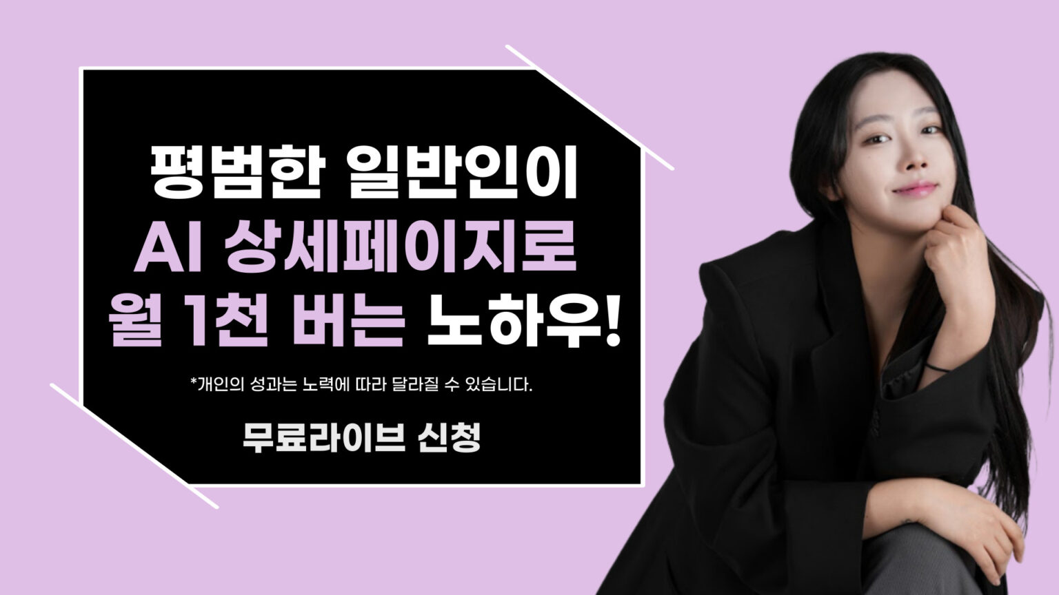 AI 상세페이지로 월 1000만 원 버는 노하우!(f)무료 누적 신청자 수 : 2,787 명 AI 상세페이지로 월 1000만 원 버는 노하우!(f) 수량 바로신청 카테고리: 무료강의 태그: 손혜리-메타-워프-영상:상세페이지 2026-01-18 19:00:00 바로신청