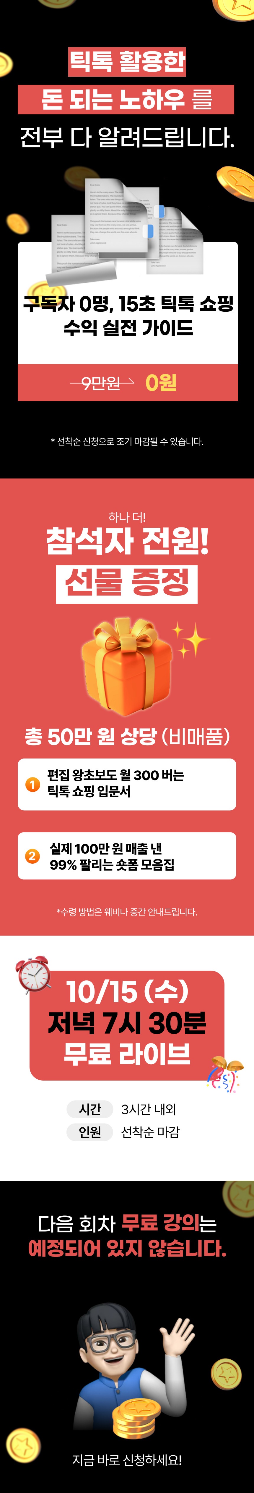 AI로 영상 만들고 올려 틱톡 쇼핑으로만 연 3억!무료 누적 신청자 수 : 1,964 명품절 카테고리: 무료강의 태그: 정민영-메타-워프-의문의F:AI틱톡 2025-10-15 19:30:00 바로신청