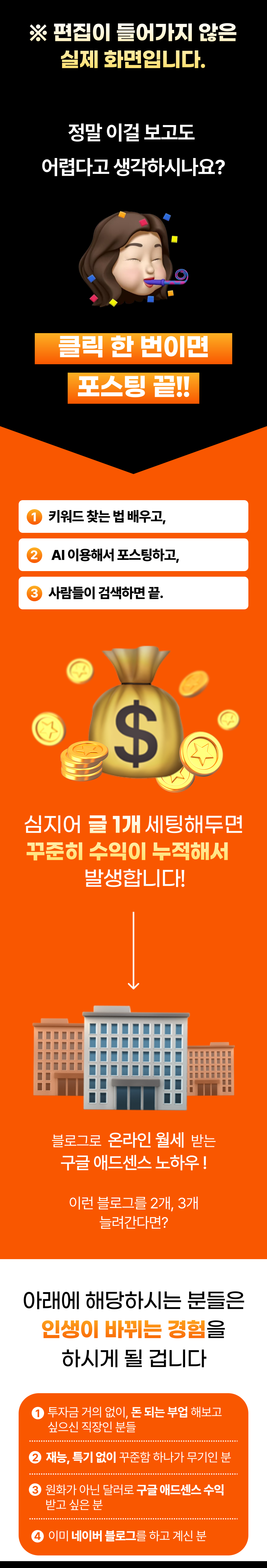 왕초보가 애드센스 블로그로 7억 번 노하우! (ti)무료 누적 신청자 수 : 82 명 왕초보가 애드센스 블로그로 7억 번 노하우! (ti) 수량 바로신청 카테고리: 무료강의 2025-05-15 20:00:00 바로신청