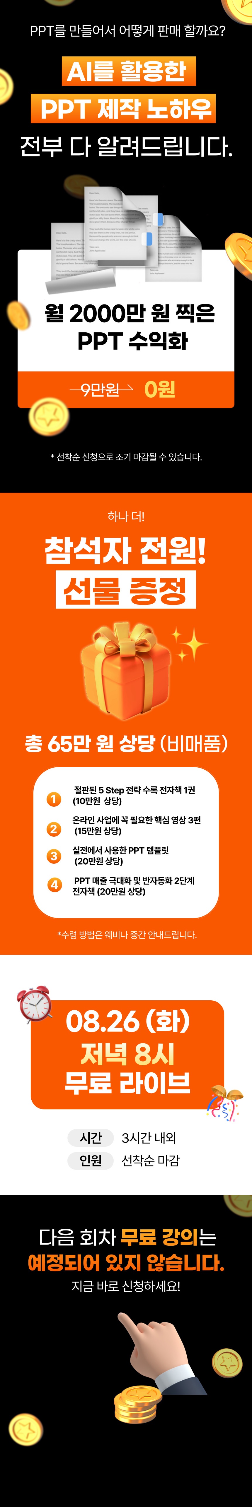 AI 활용한 PPT 제작으로 월 매출 2천 달성한 노하우!(T)무료 누적 신청자 수 : 1 명 AI 활용한 PPT 제작으로 월 매출 2천 달성한 노하우!(T) 수량 바로신청 카테고리: 무료강의 2025-08-26 20:00:00 바로신청