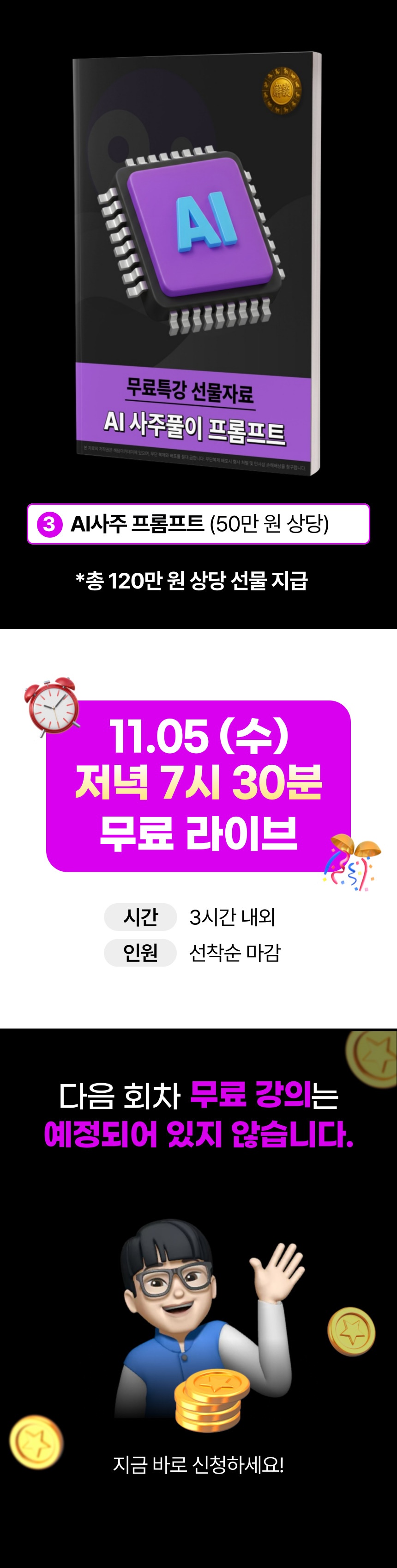 노트북 하나로 시작하여 월 300 버는 AI 사주 상담!(abf)무료 누적 신청자 수 : 0 명 노트북 하나로 시작하여 월 300 버는 AI 사주 상담!(abf) 수량 바로신청 카테고리: 무료강의 2025-06-02 20:00:00 바로신청