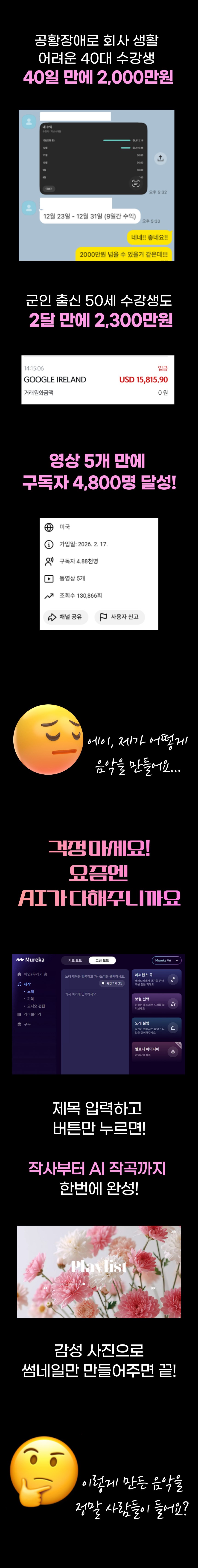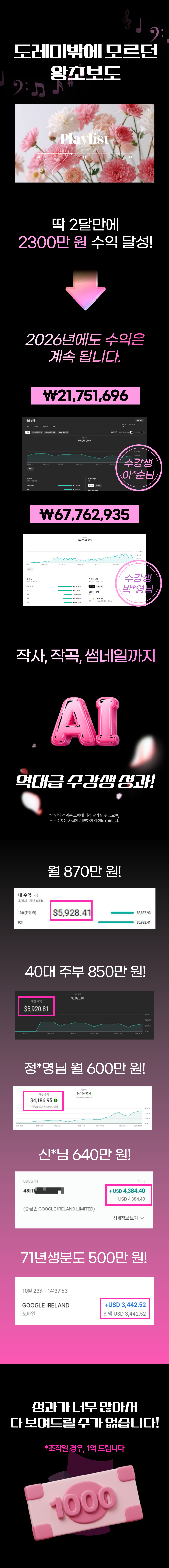AI로 만든 음악으로 월 2000만원 버는 노하우!무료 누적 신청자 수 : 3,670 명 AI로 만든 음악으로 월 2000만원 버는 노하우! 수량 바로신청 카테고리: 무료강의 태그: 최보라-구글-워프-공개사이트:AI음원 2026-03-22 19:00:00 바로신청