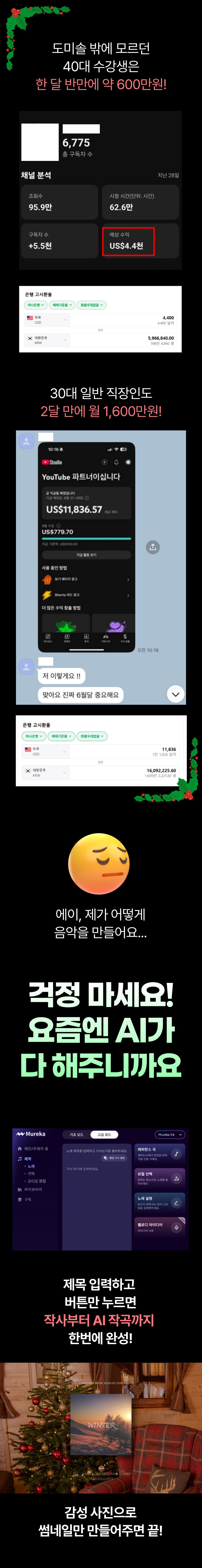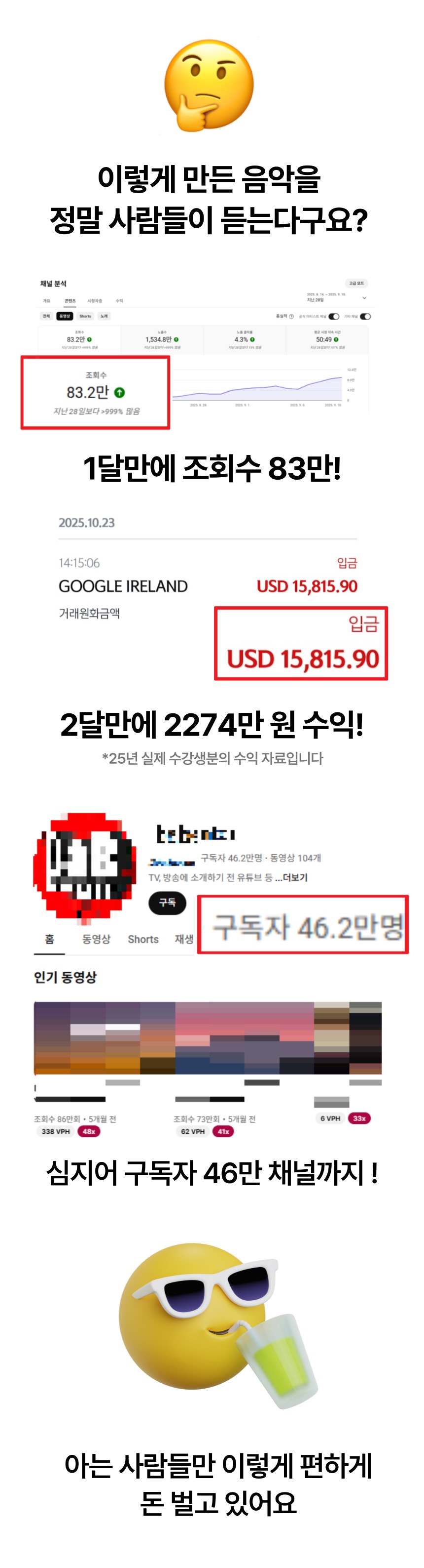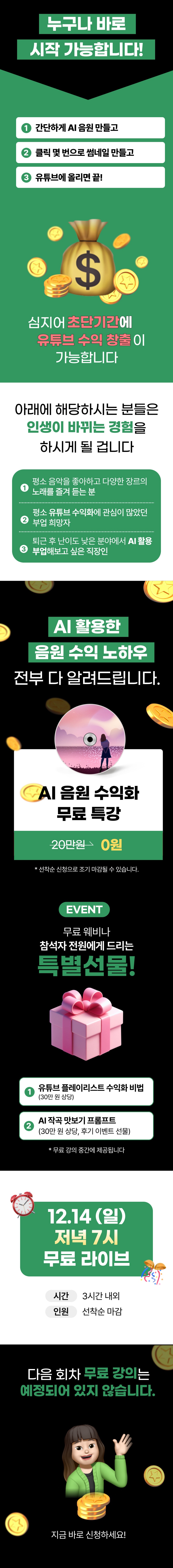 AI로 만든 음악으로 월 2000만원 버는 노하우!무료 누적 신청자 수 : 2,321 명 AI로 만든 음악으로 월 2000만원 버는 노하우! 수량 바로신청 카테고리: 무료강의 태그: 최보라-구글-워프-공개사이트:AI음원 2025-12-14 19:00:00 바로신청