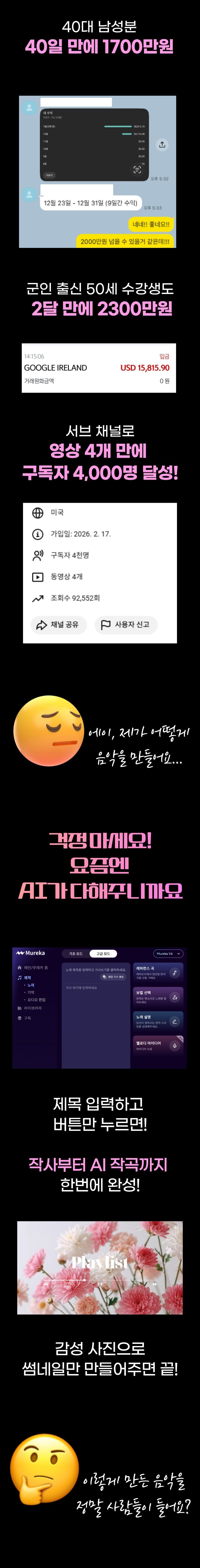 AI로 만든 음악으로 월 2000만원 버는 노하우!8무료 누적 신청자 수 : 5,259 명 AI로 만든 음악으로 월 2000만원 버는 노하우!8 수량 바로신청 카테고리: 무료강의 태그: 최보라-구글-워프-공개사이트:AI음원 2026-03-22 19:00:00 바로신청