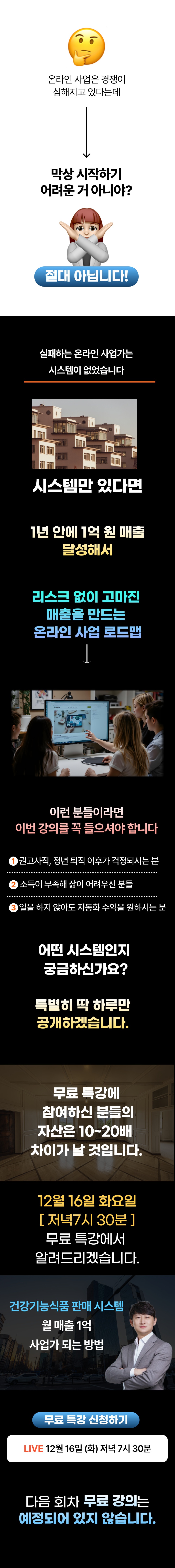 하루 1시간! 아무나 못 파는 상품으로 월1억 만드는 비밀 전략!무료 누적 신청자 수 : 178 명 하루 1시간! 아무나 못 파는 상품으로 월1억 만드는 비밀 전략! 수량 바로신청 카테고리: 무료강의 태그: 김동훈-구글-워프-공개사이트:건기식 2025-12-16 19:30:00 바로신청