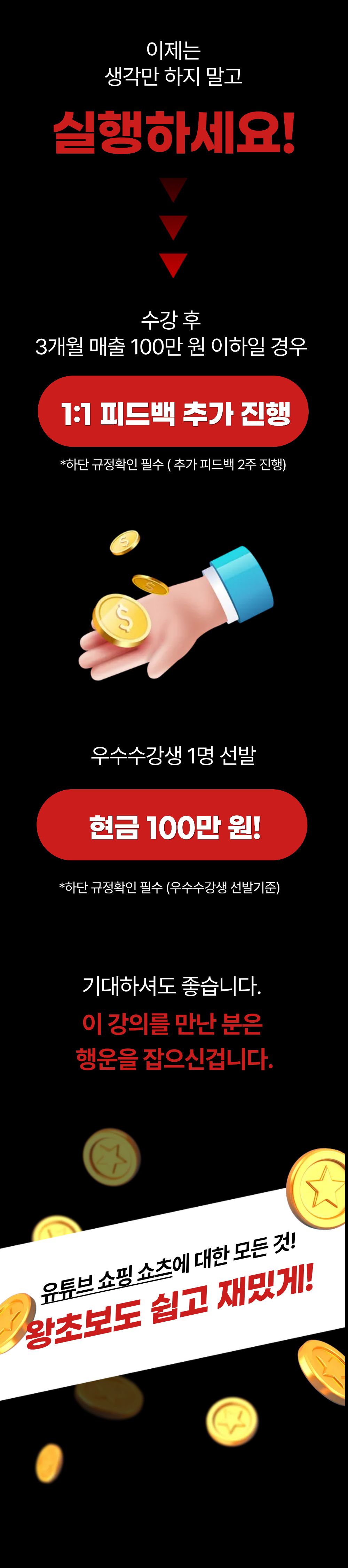 수강 기간 종료 이후 3개월 (마지막 강의종료일로부터 그 주차 마지막 과제제출일을 기산일로 한다) 이후까지 누적 매출 100만원을 달성하지 못한 경우, 아래 조건에 해당되는 수강생 분들에 한해 2주간 (14일) 추가 피드백을 제공합니다.