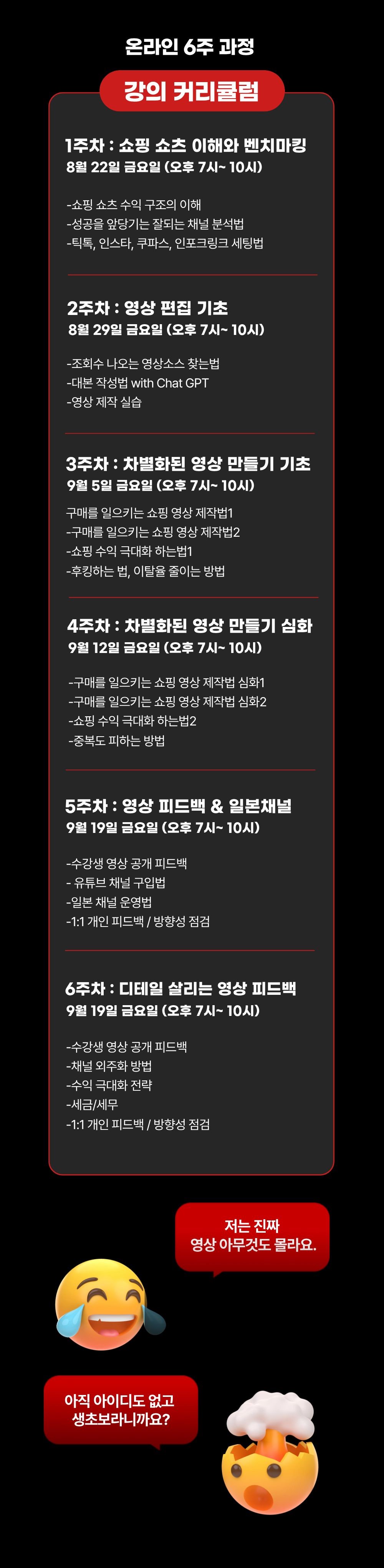 본 강의는 온라인 VOD + 라이브 형태로 총 6주간 진행됩니다.