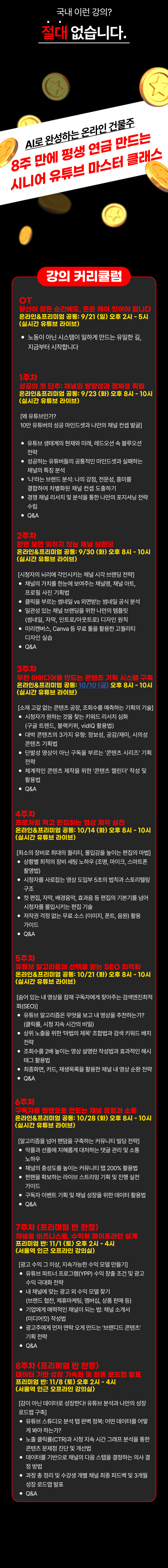 [정규 6주 마스터 클래스] 본 강의는 O.T 수업 (1회) + 온라인 라이브 (6회) 형태로 총 7회 진행됩니다.