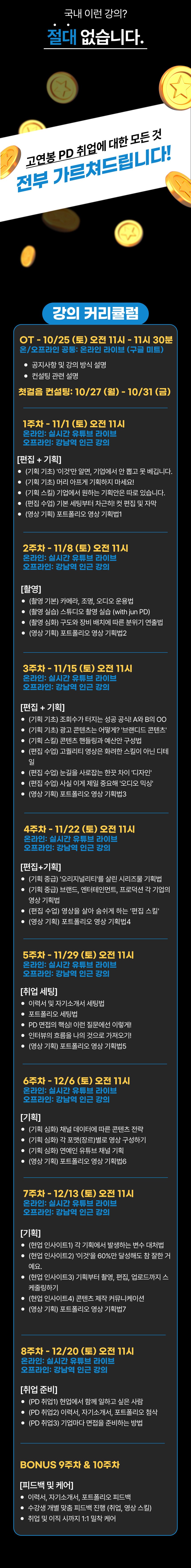 [온라인 반] – 본 강의는 O.T + 8주간 오전 11시 부터 오후 2시까지 3시간 동안 온라인 라이브 형태로 진행됩니다.