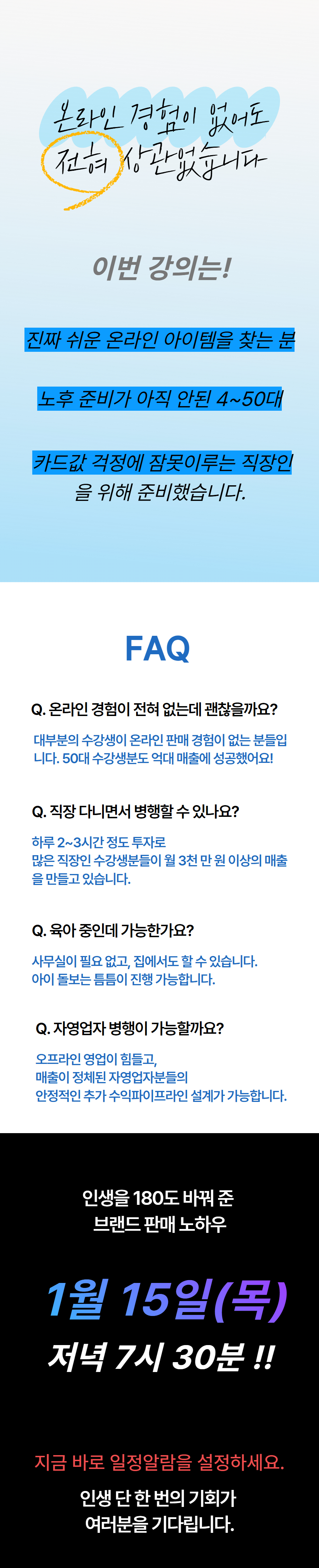 하루 1시간으로 끝! AI 로 나이키 운동화 월 1억 파는 노하우!무료 누적 신청자 수 : 120 명 하루 1시간으로 끝! AI 로 나이키 운동화 월 1억 파는 노하우! 수량 바로신청 카테고리: 무료강의 2026-01-15 19:30:00 바로신청