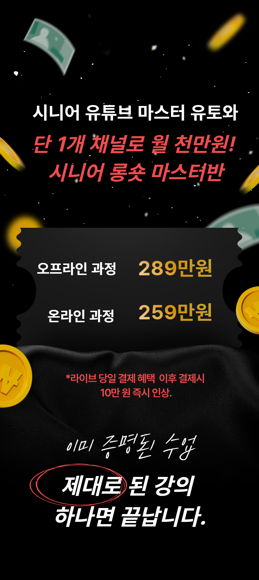 혜택 1 유토가 직접 키운 시니어 유튜브 채널 제공 (2명 선발)