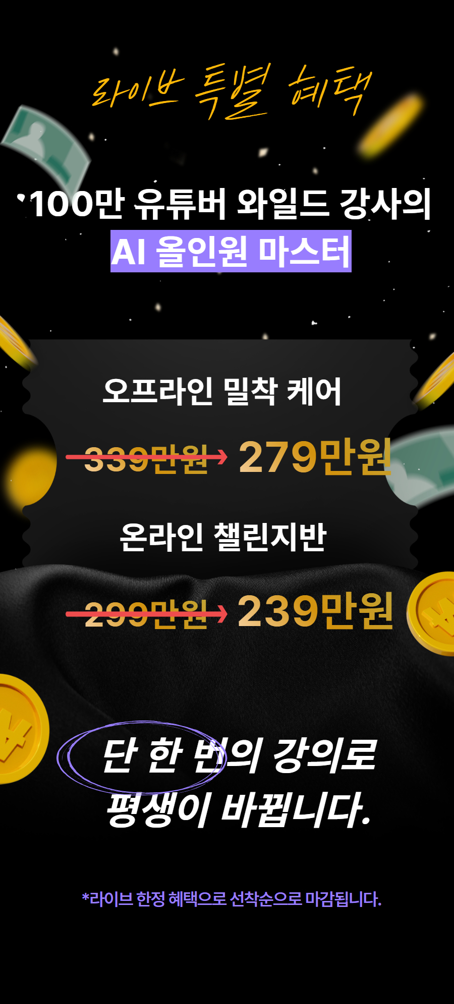 수강기간내 가장 빠르게 수익창출을 인증하신 1인 선발하여 강사가 직접 현금 100만원 지급