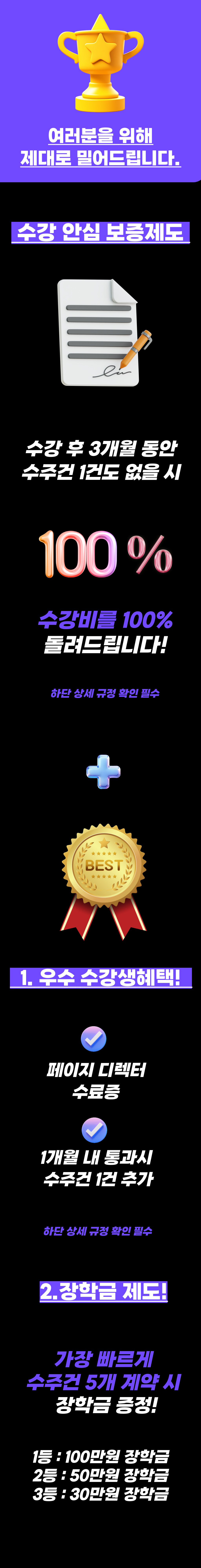 수료증(포트폴리오 통과) 받은 시점부터, 가장 빠른순으로 수주건 5개 계약하신 분께 장학금을 드립니다.