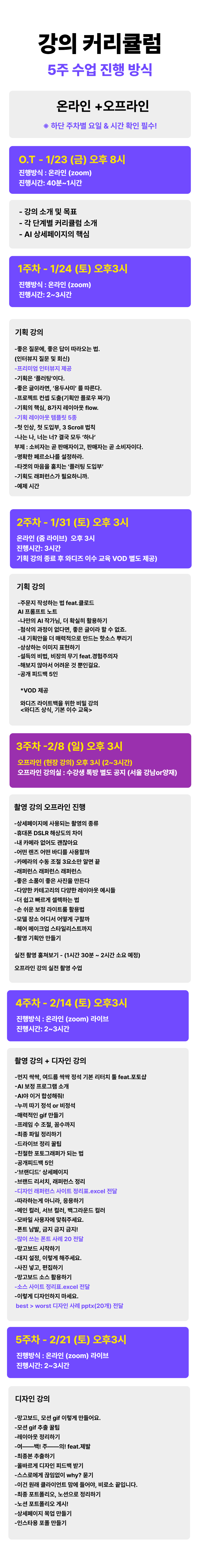 정규과정 : OT1회+온라인 라이브(4회)+오프라인 1회 총 6회