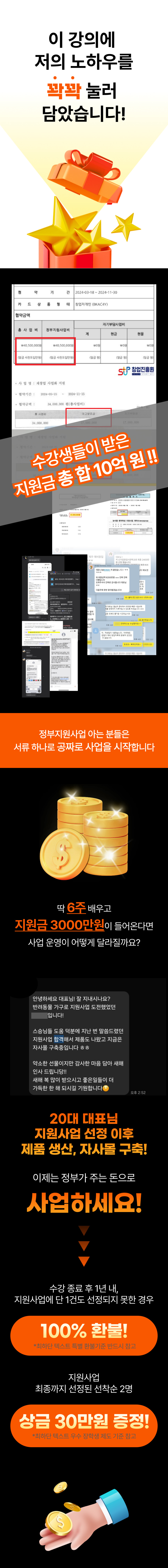 과제, 숙제 100% 제출한 수강생 중 지원사업 최종에 선정된 선착순 2명 각 30만원 씩 강사가 직접 현금 지급