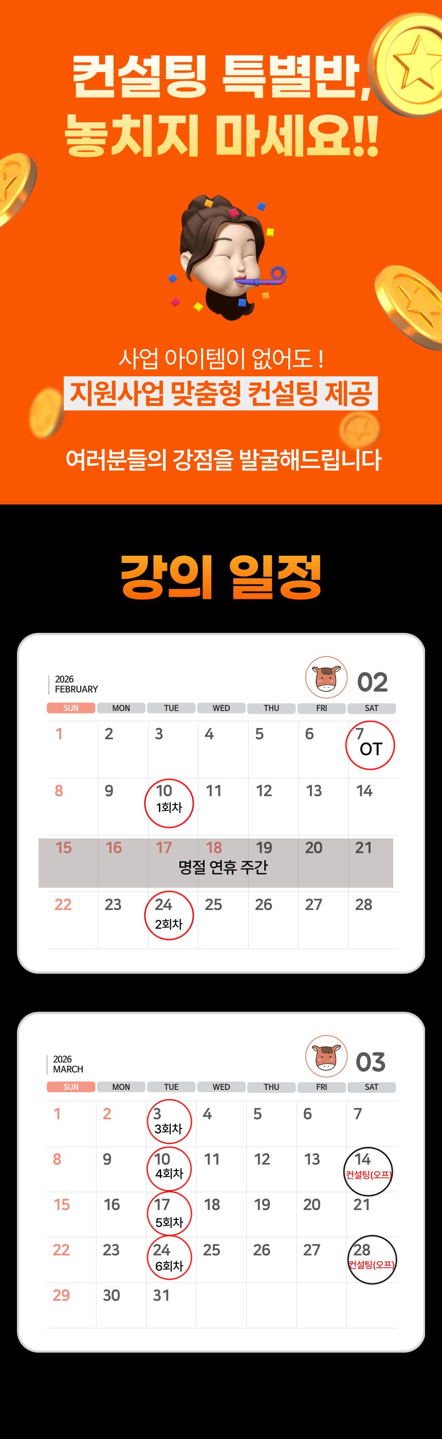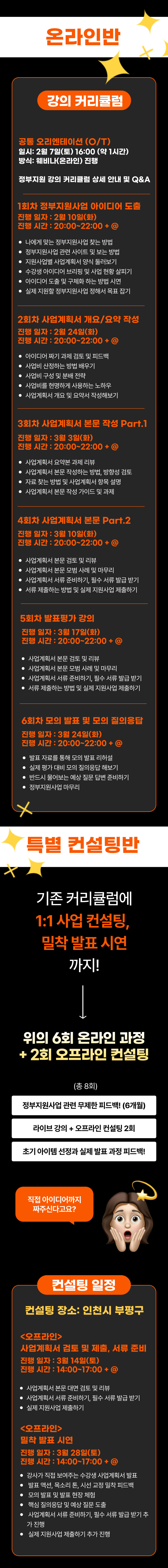 수강 종료 후 3개월 내, 지원사업에 단 1건도 선정되지 못한 경우, 피드백 및 컨설팅 추가 8개월 제공 (총 1년)