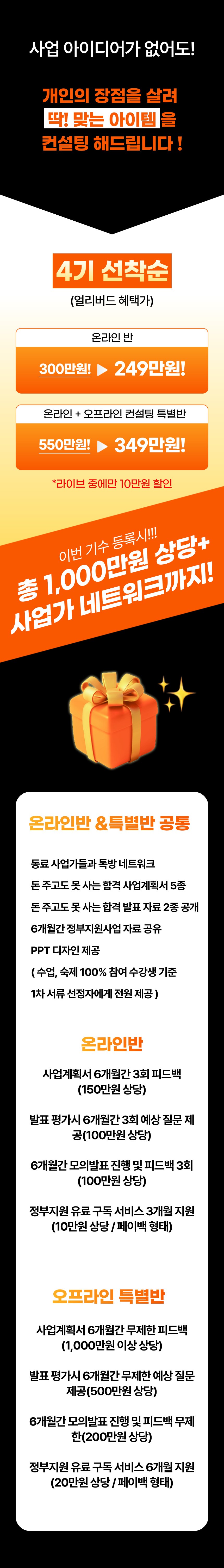 오프라인반 : 6개월 구독료 지원(수강생 결제 후 페이백 형태)