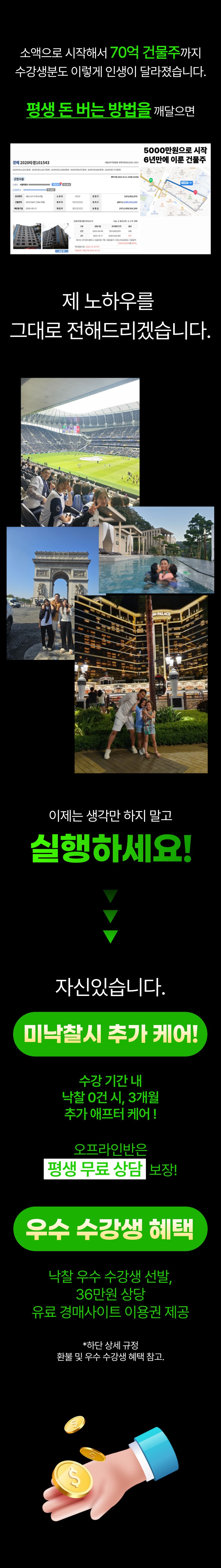 온라인반의 경우, 수강 중 경매 물건 미낙찰시 3개월 동안의 추가 컨설팅이 진행됩니다. (단톡방 추가 운영)