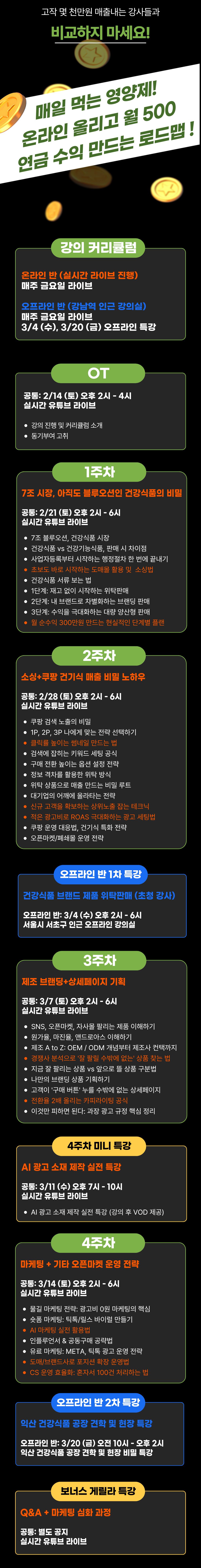 * 온라인 라이브 수업 4회, 오프라인 특강 2회를 필수로 참여해야 합니다.
