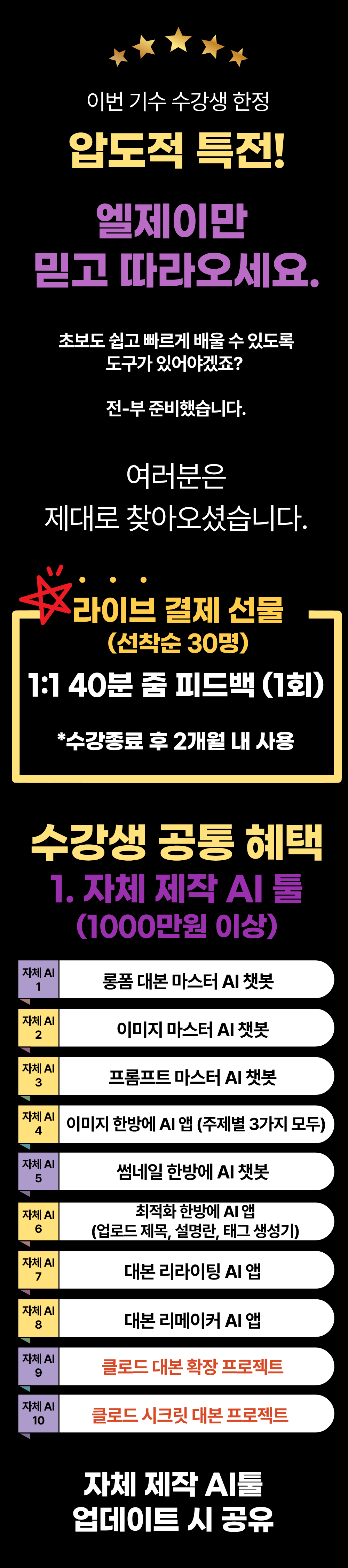 통합: AI 프리미엄 유튜브반, 스페셜케어반 각 1명씩 과제 우수수강생 24인치 서브모니터 증정