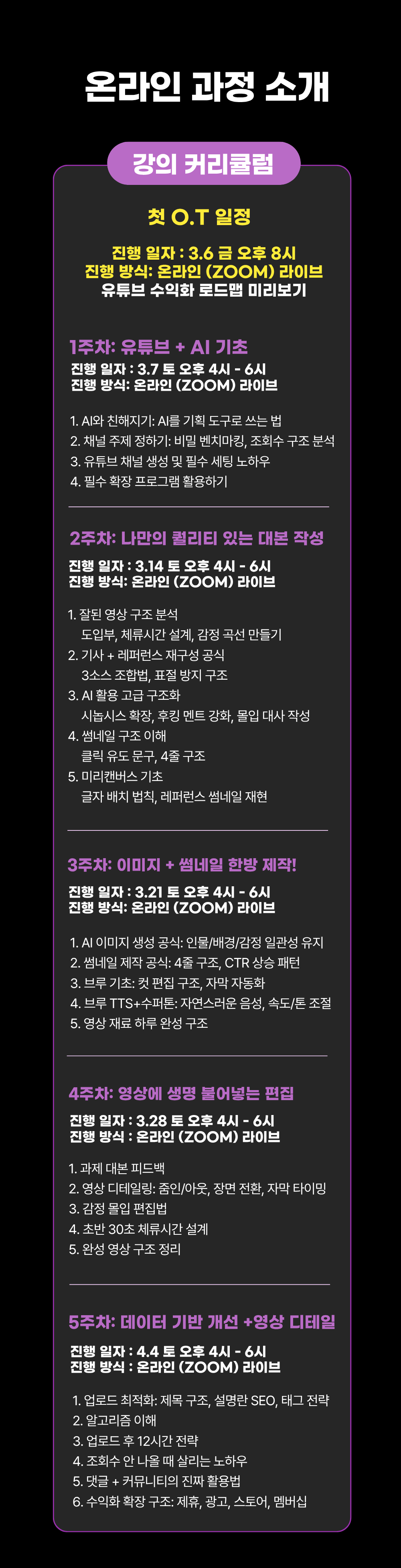 강의 진행 일자 및 상세 커리큘럼은 상단 이미지 내에서 확인 가능합니다.