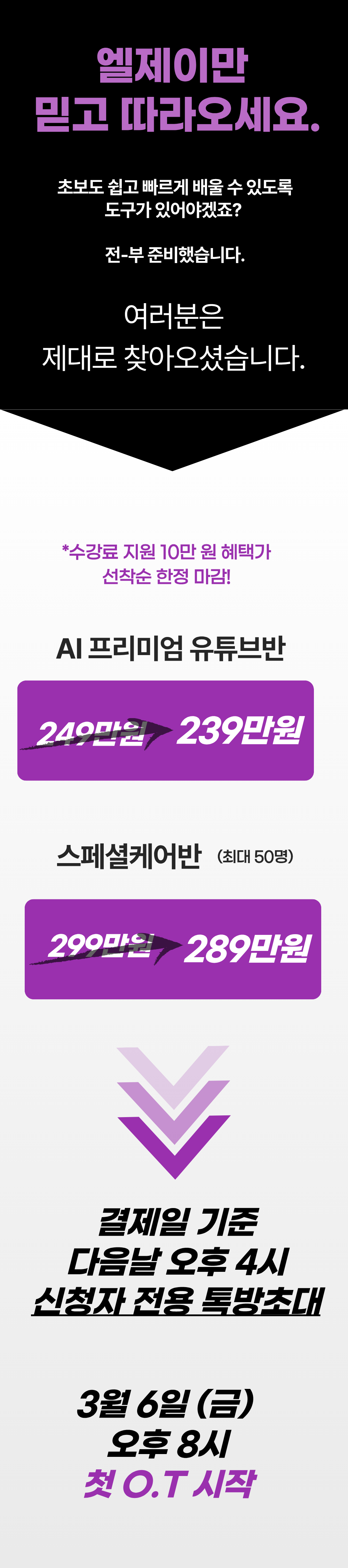 통합: AI 프리미엄 유튜브반, 스페셜케어반 정규과정 종료 후 2개월 이내 가장 빠르게 수익창출 조건을 달성할 경우 해당.