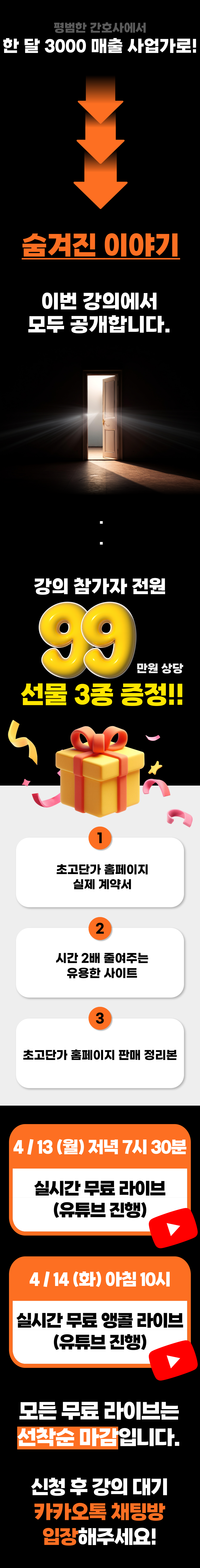 육아파파도 하루 2시간 홈페이지 만들고 월 3000만원 버는 노하우!무료 누적 신청자 수 : 39 명 육아파파도 하루 2시간 홈페이지 만들고 월 3000만원 버는 노하우! 수량 바로신청 카테고리: 무료강의 2026-04-13 19:30:00 바로신청
