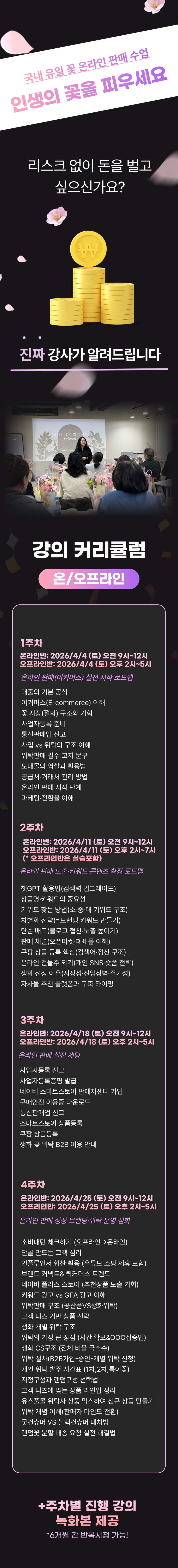 본 과정은 지식·정보 제공을 목적으로 하는 교육서비스로서, 수강생의 개별 수익·매출·성과를 보장하지 않습니다.