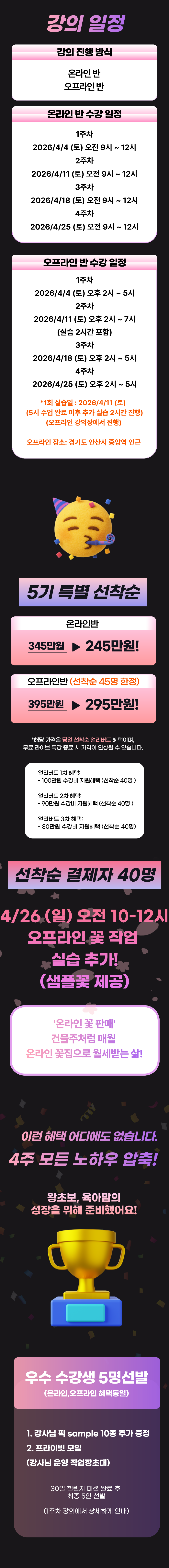 *온라인반 : 온라인 ZOOM 실시간 수업으로 OT1회 진행 + 온라인 라이브 4회차로 운영됩니다